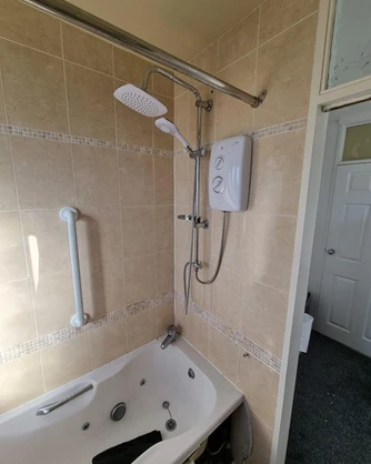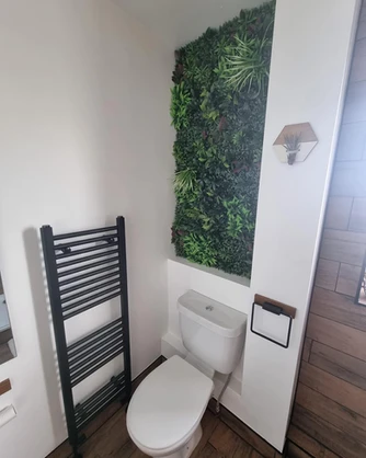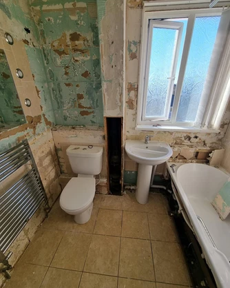 • Bathroom layout slightly changed to create more space • Counter top bespoke basin and worktop fitted • Walk in shower • Black accessories added and amazing Bali theme with the artificial flowers added above the toilet Before After